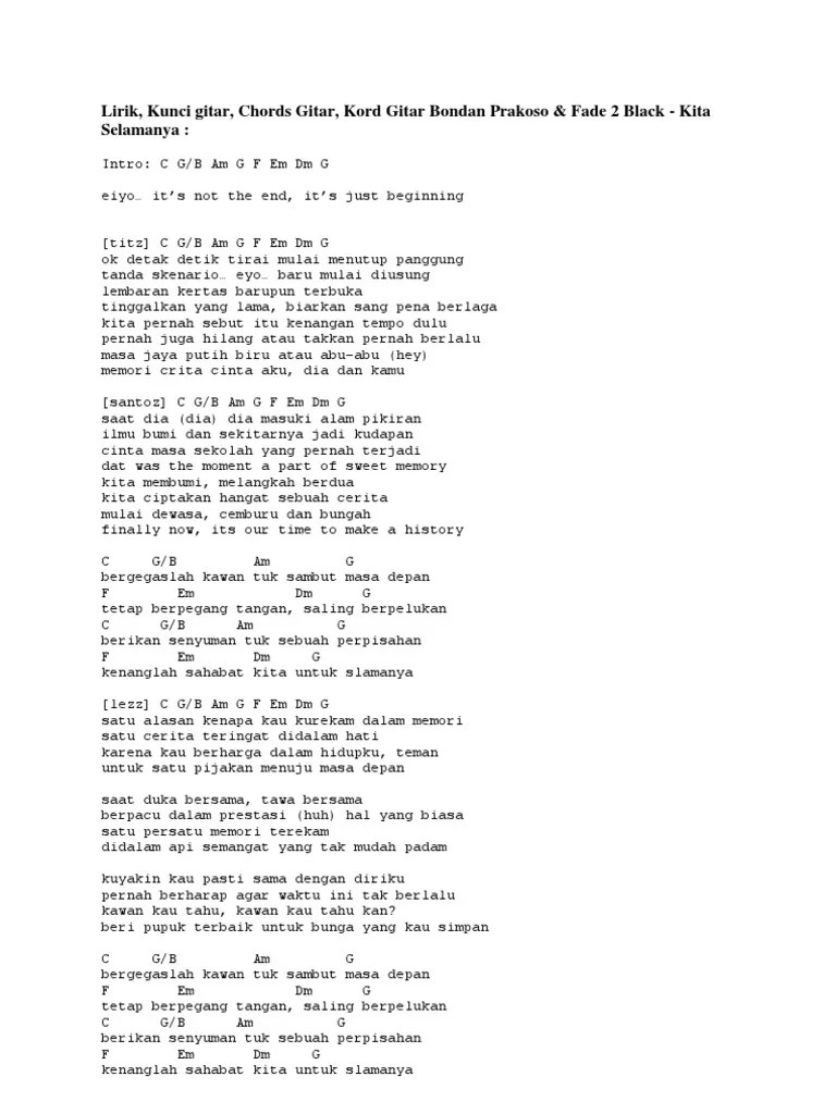 Mengapa semakin atas semakin dingin; Em c g d em c g d. Michael joe kunci gitar dan lirik. G dm g em kenanglah sahabat am g kita selamanya chords by bondan prakoso & Last edit on mar 15, 2015. chord lagu selamat jalan bondan prakoso. Karena saya hanya berusaha menyesuaikannya sendiri menggunakan gitar biasa. Fade 2 black by ihsan posted on november 22, november 20, intro: 4x yeah speakin about the time. Pada kesempatan ini ibnudin akan berbagai beberapa kunci gitar bondan. Dan kau adalah tema saatku rasakan galau g kau ada untuk melengkapi diriku kau tercipta. Fade 2 black for guitar, ukulele, and piano !! chord kunci gitar dan lirik lagu bondan prakoso fade 2 black hidup berawal dari mimpi, until youre a vinyl connoisseur, odds are your actual physical music collection is really sparse.